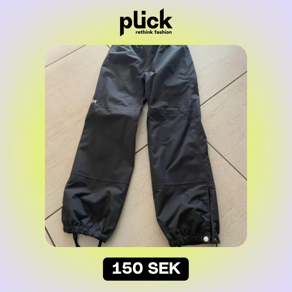 Överdragsbyxor i fint skick, knappt synligt märke på ena knät men inget som påverkar funktionen storlek 140 (10år)