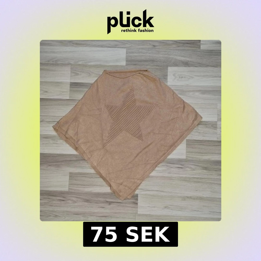 Säljer en snygg beige poncho med ett coolt stjärnmönster i mitten. Ponchon är tillverkad i en mjuk blandning av viskos, bomull och kashmir, vilket gör den både bekväm och stilren. Perfekt för att hålla sig varm och trendig under kyliga dagar. 🌟