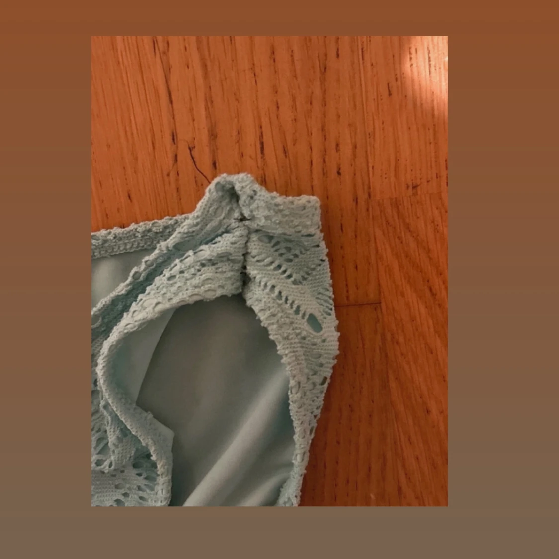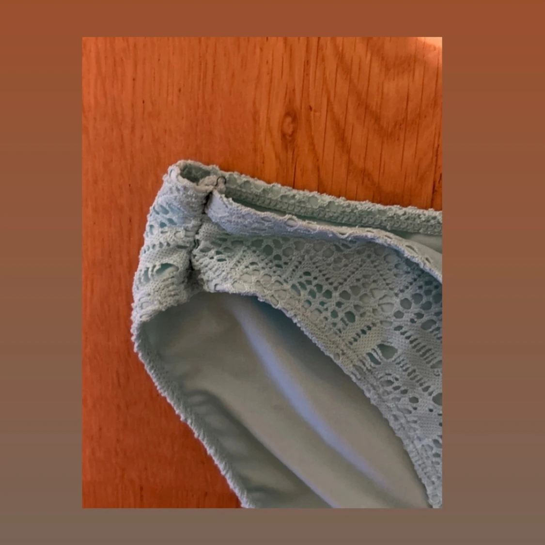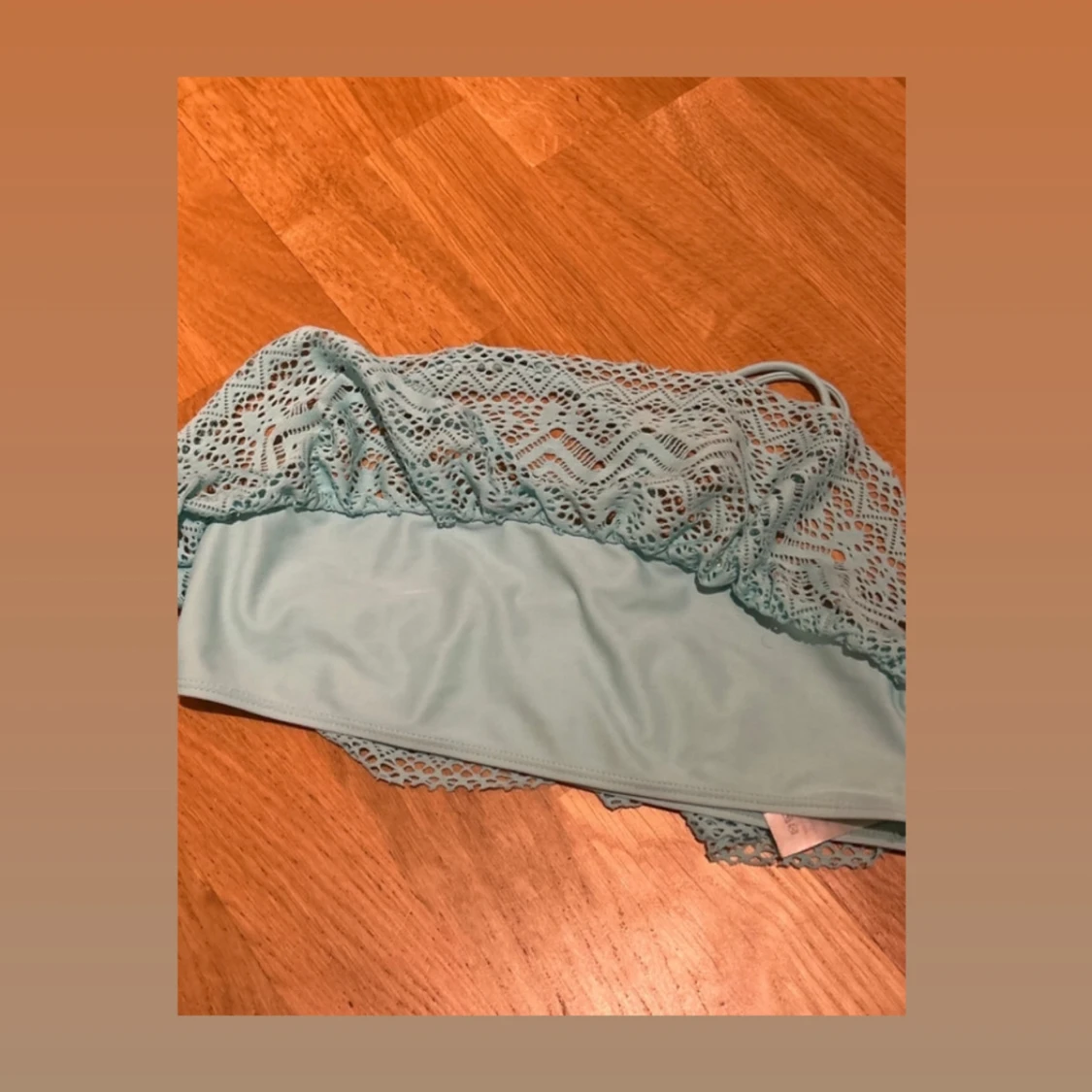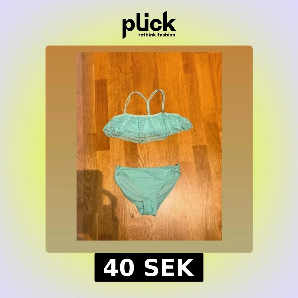Supersöt ljusblå bikini med volang och spetsdetaljer. Toppen har smala axelband och ett snyggt virkat mönster över bysten. Bikinitrosan har matchande spets och klassisk passform. Perfekt för strandhäng och poolparty!🌊☀️🏝️