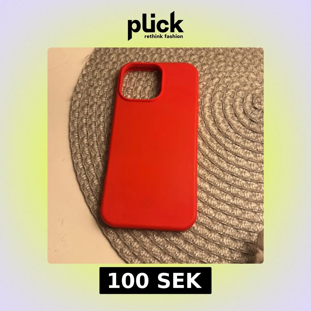 Snyggt röd mobilskal i silikon med stor kamerautskärning, passar iPhone-modeller med större kameralins. Skalet är i gott skick utan synligt slitage och ger bra skydd mot repor och stötar.