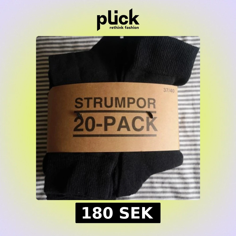 20-pack klassiska svarta strumpor i storlek 37/40. Strumporna är tillverkade av 50% bomull, 48% polyester och 2% elastan för en skön och stretchig passform. Perfekta till vardags och enkla att matcha med allt. Kolla mina andra annonser för samfrakt.