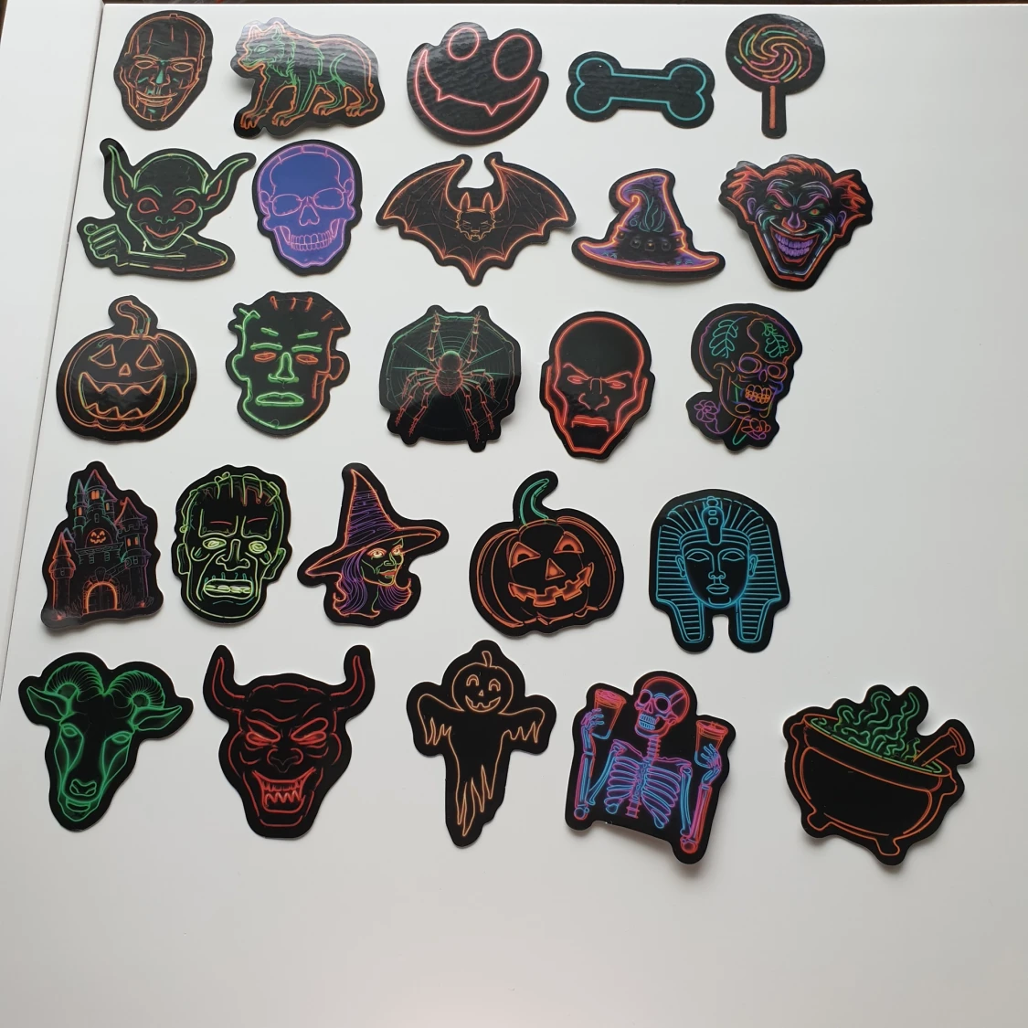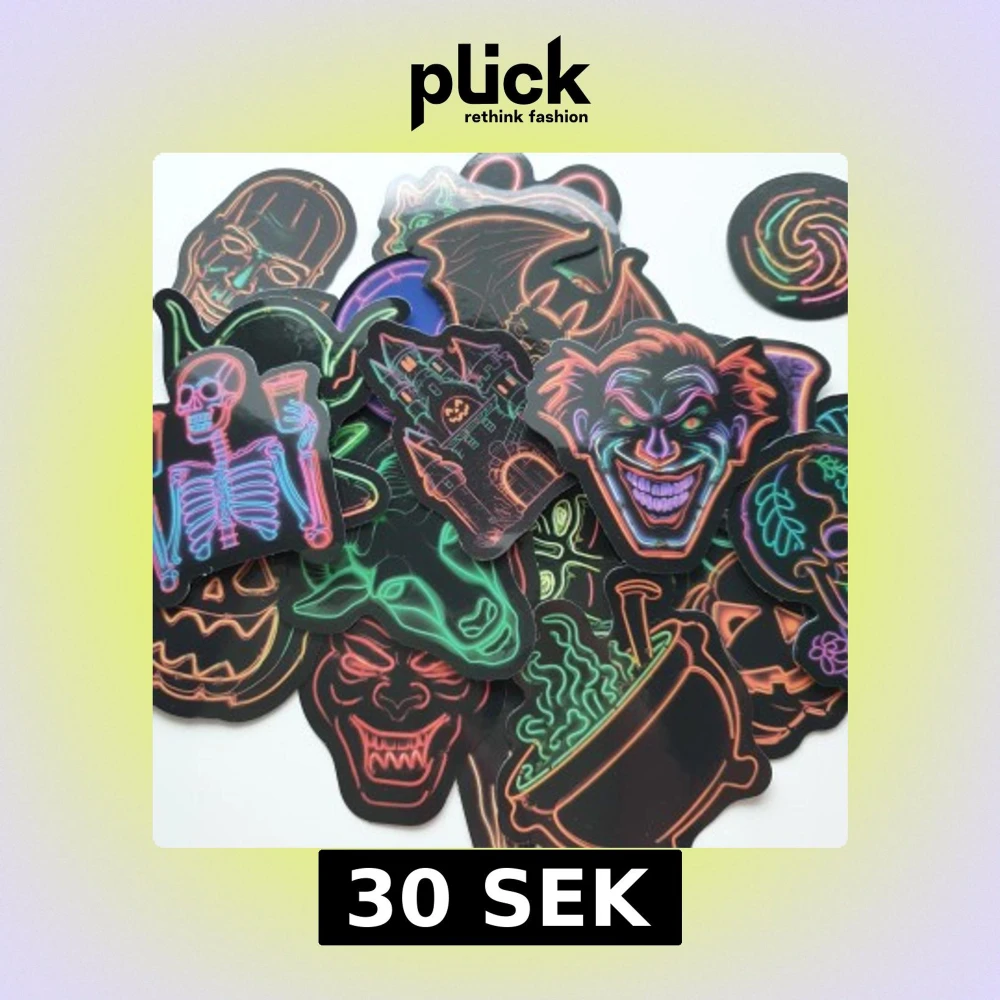 Klistermärken/stickers Motiv: halloween, skelett, spöke, fladdermus, pumpa,mm... Antal: 25st Skick: ny/oanvänd Kul att använda till pyssel, scrapbooking och annat. Kan tex användas till att dekorera din bärbara dator, anteckningsbok, resväska, etc.