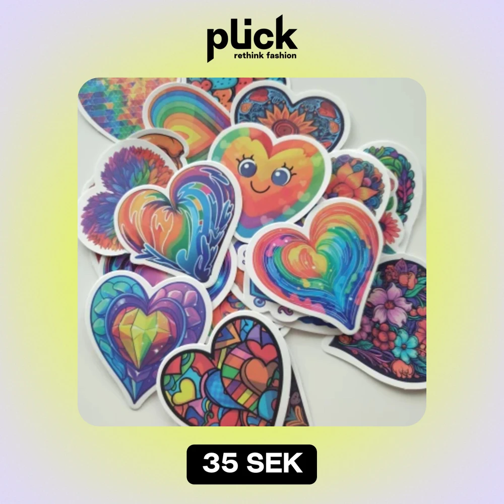 Klistermärken/stickers Motiv: regnbågsfärgad hjärtan Antal: 25st Skick: nya/oanvända Kul att använda till pyssel, scrapbooking och annat