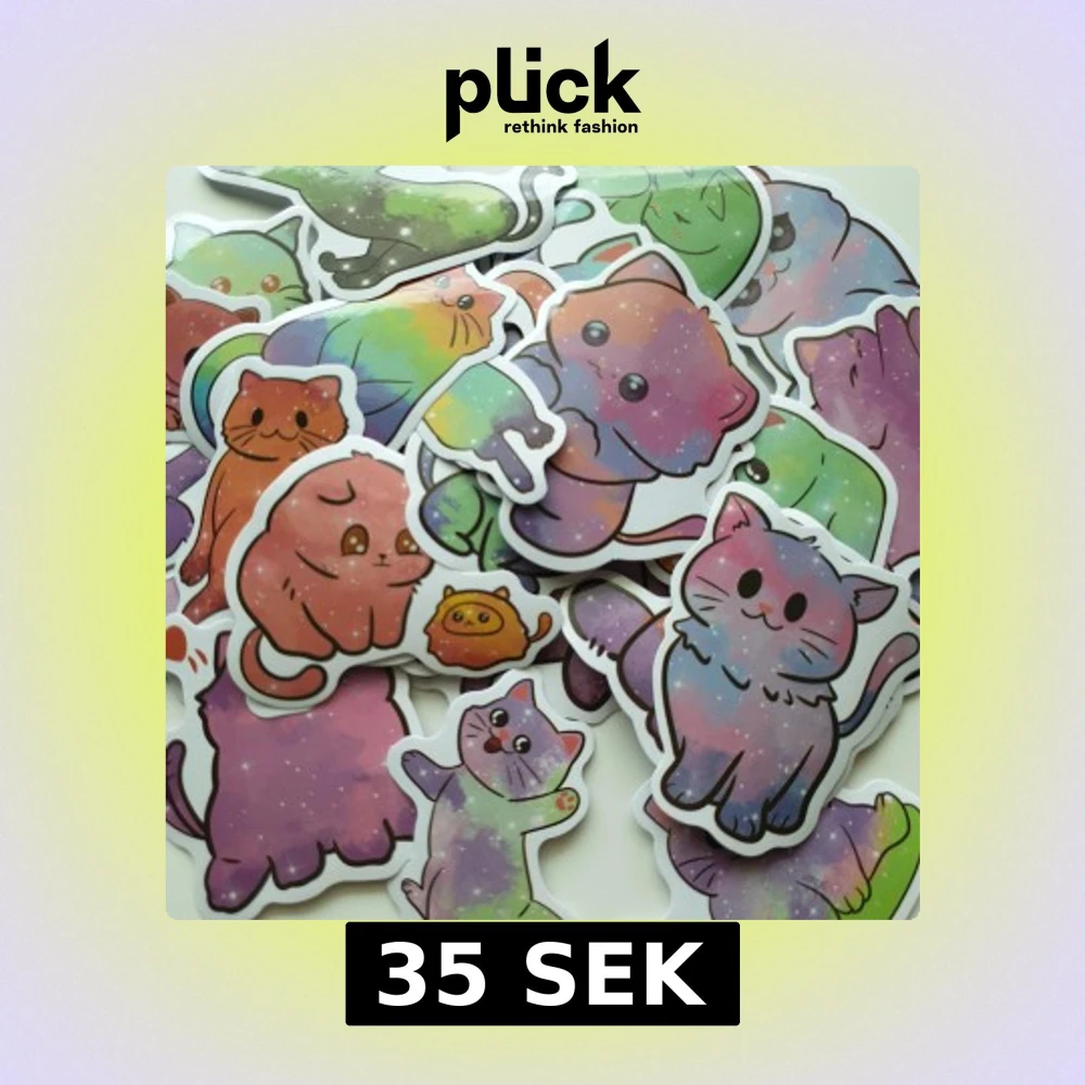 En samling med söta, färgglada klistermärken föreställande katter i olika poser och uttryck. Perfekt för att dekorera din laptop, mobil eller anteckningsbok och ge din vardag en extra dos cuteness och färg. Passar dig som älskar katter och vill ha något unikt och lekfullt!