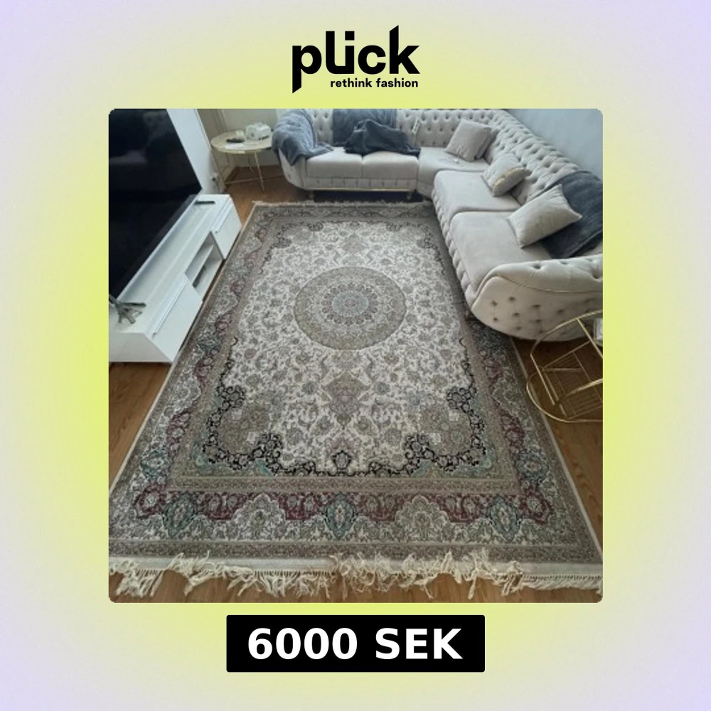 Bilderna visar en vacker matta med klassiskt orientaliskt mönster i beige, vinrött, grönt och blått. Mattan har en stor central medaljong och detaljerade bårder. Fransen är något sliten men mattan ser annars välvårdad ut. Perfekt för vardagsrum eller större rum för en elegant känsla. Priset och om ni vill ha bara ena mattan kan vi diskutera.