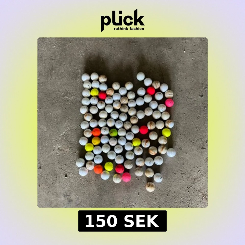 Bilden visar ett stort antal golfbollar i olika färger, inklusive vita, gula, orangea och rosa. Golfbollarna är använda och har varierande grad av smuts och slitage. Ingen bok syns på bilden.