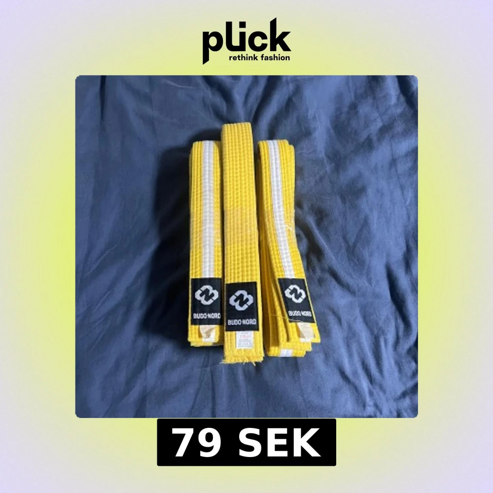 Säljer ett gult bälte från Budo-Nord med vit rand, perfekt för kampsport som judo eller karate. Bältet är tillverkat i en mix av bomull och polyester och har en klassisk, rak form. Märket är tydligt broderat på ena änden. Finns i längderna 320 cm och 240 cm.
