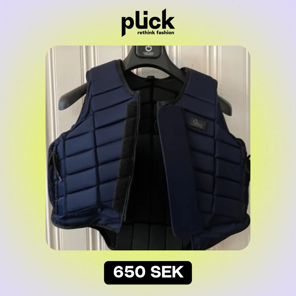 Säljer nu min marinblåa ridväst då den inte kommer till användning. Köptes på en tävling 2022, använd 1 gång sen dess. Väldigt fint skick utan några skavanker. Storlek 12, lite osäker på vad de innebär i vanlig storlek, men passar mig som har 32/34