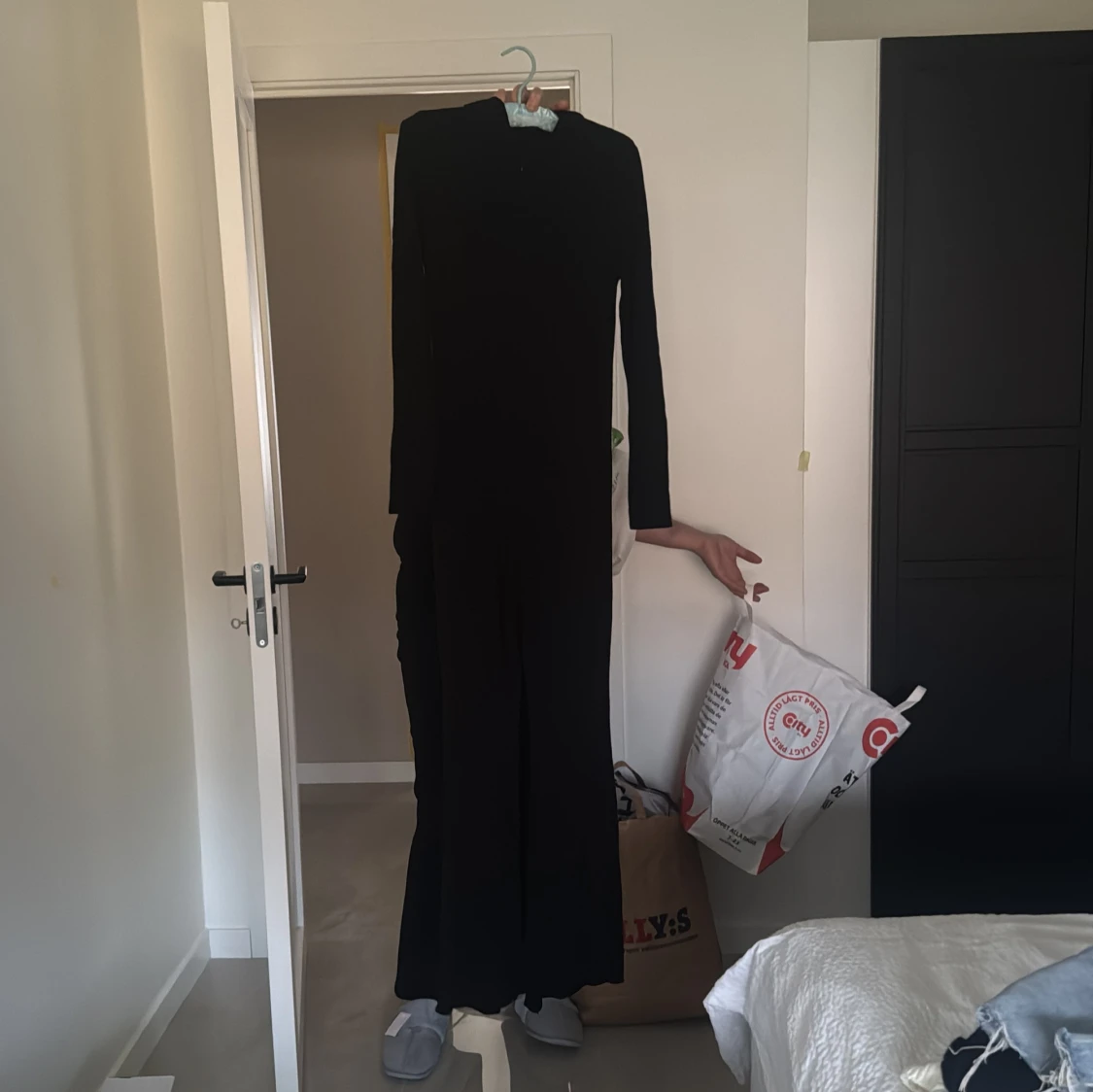 Elegant svart jumpsuit med krage och långa ärmar. Perfekt för en stilren look.