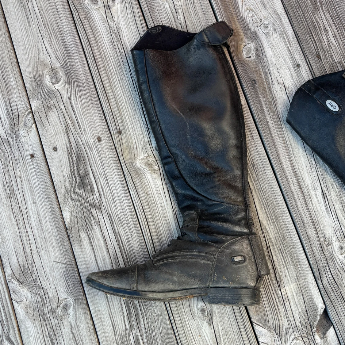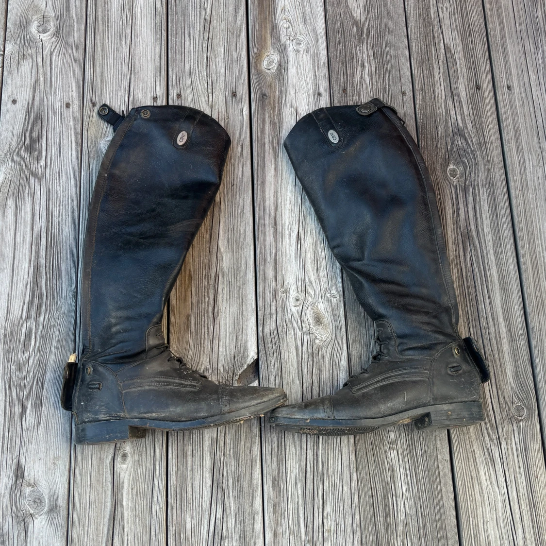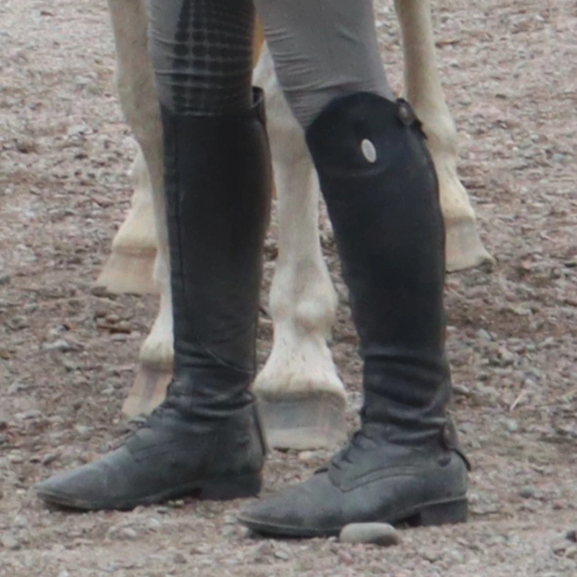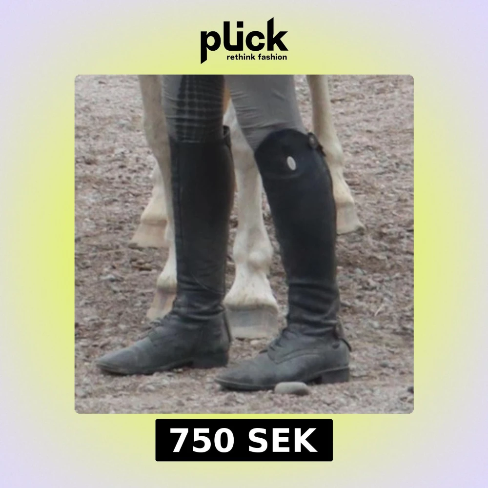 Säljer ett par klassiska svarta ridstövlar i skinn med snörning framtill och låg klack. Stövlarna har rund tå och dragkedja baktill för enkel påtagning. Perfekta för dig som rider och vill ha en stilren look i stallet. Nypris 1200kr mitt pris 750kr