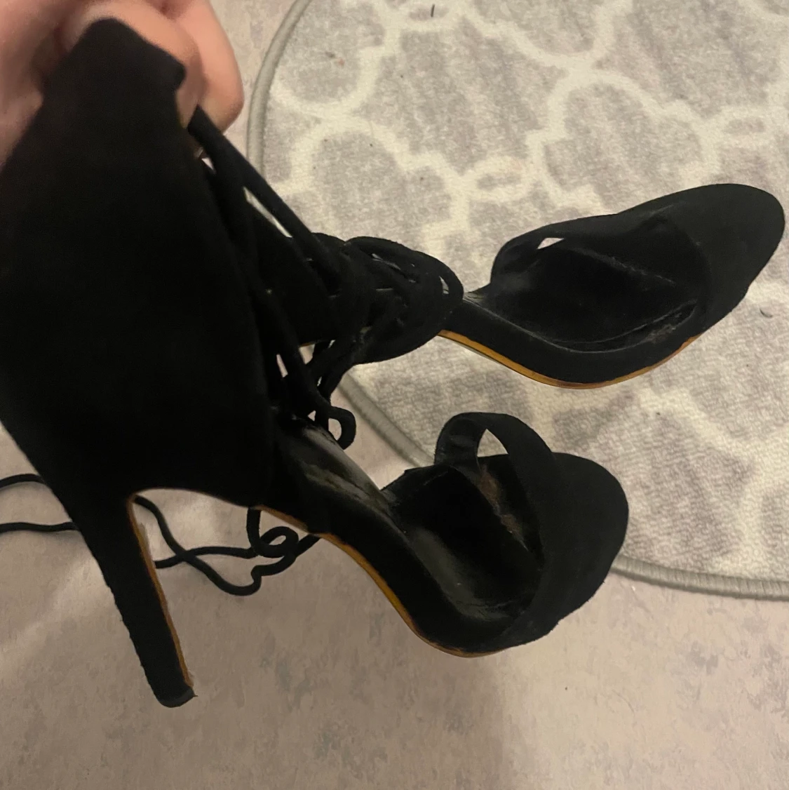 Hej, säljer dessa super fina svarta klackar man kan knyta upp. Använda 2-3 gånger. Inga defekter. Köpta på shein för 300kr säljer för 169kr.