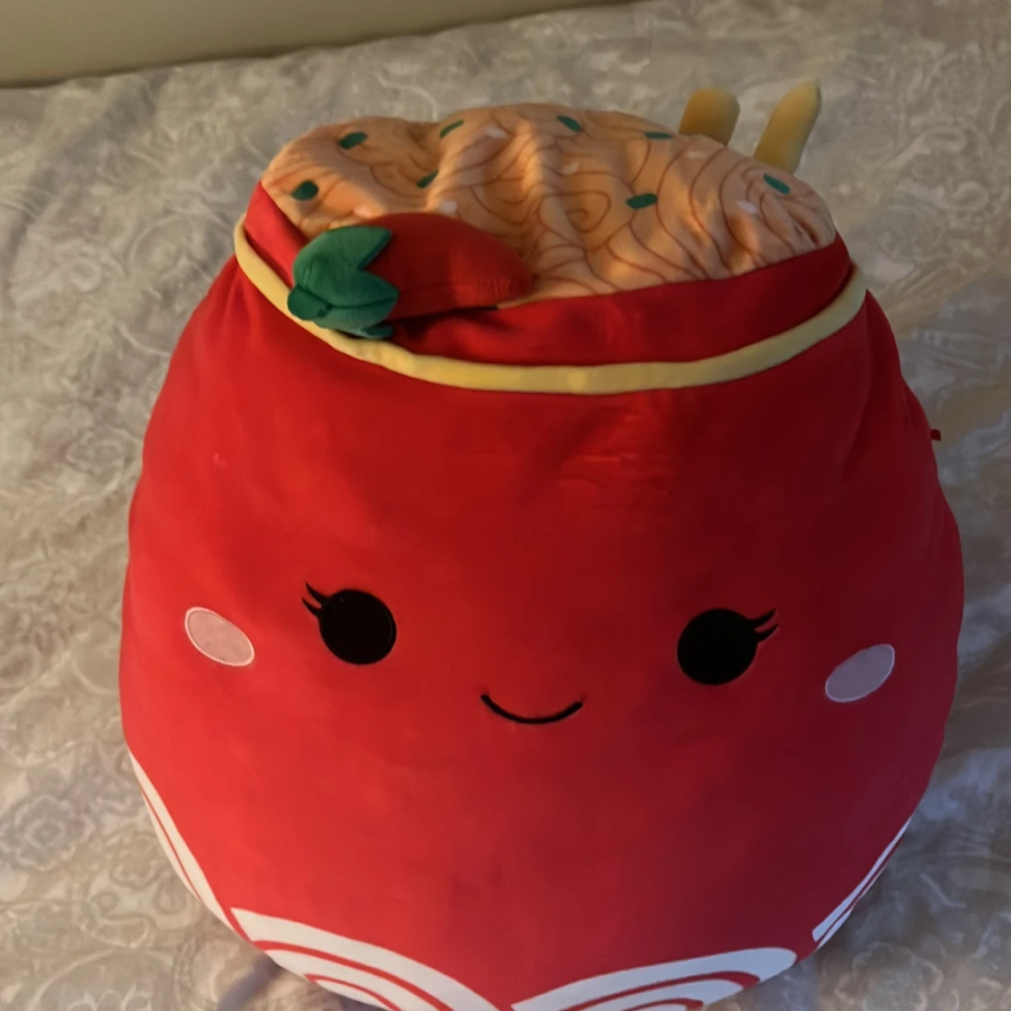 Supermjuk och stor Squishmallows Odion Ramen plushie i mycket fint skick.Färgglad design med glada ansiktsdetaljer och ramen-topping på toppen. Perfekt som present eller mysig kudde. Inga synliga defekter eller slitage, etikett medföljer.