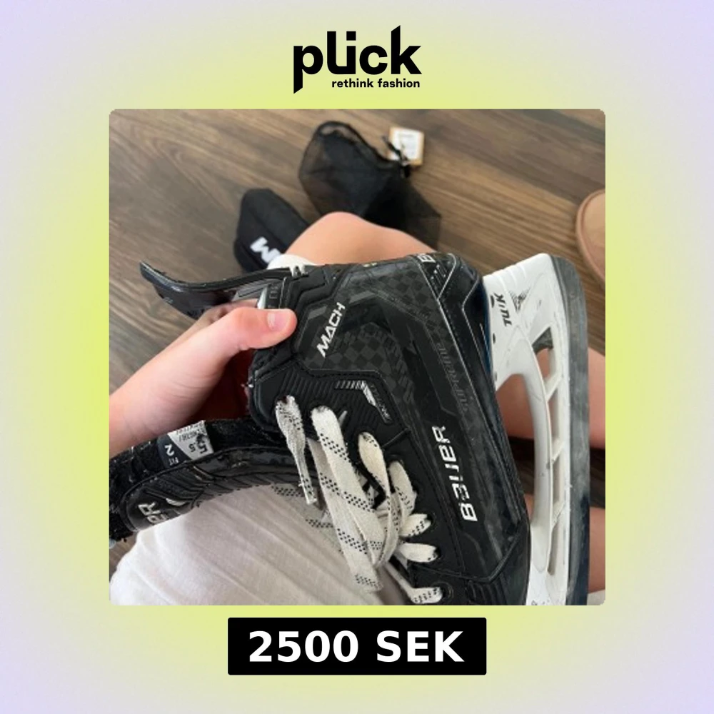 Säljer ett par Bauer Supreme Mach skridskor i svart med vita detaljer och snörning. Skridskorna har en robust och sportig design med kolfibermönster och vit sula. Perfekta för dig som vill ha grym kontroll och stil på isen. Jag köpte skridskorna för 8999kr men säljer för 2500 de är jätte bra skick och dem är endast använda en säsong!