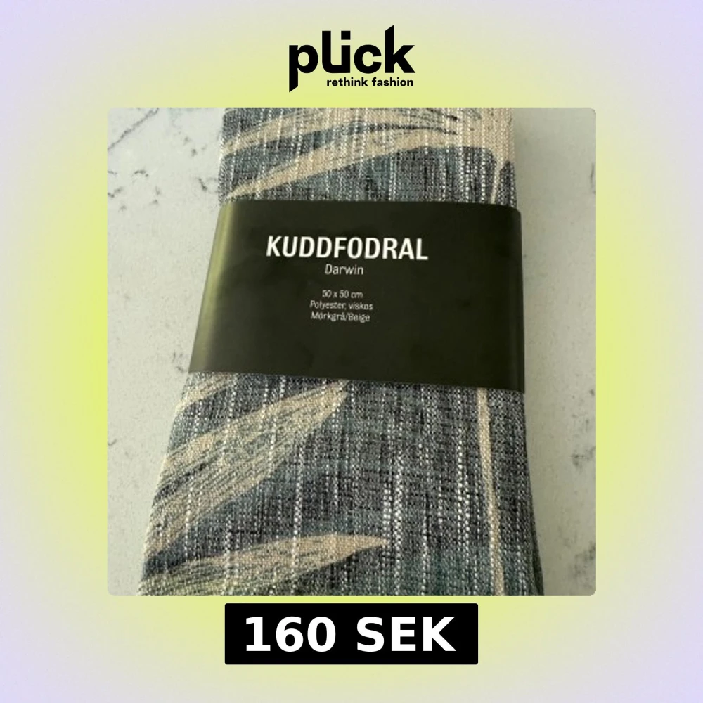 Stilrent kuddfodral i mörkgrått och beige med naturinspirerat mönster. Tillverkat av polyester och viskos, 50x50 cm. Perfekt för att ge soffan eller sängen en modern och fräsch känsla.