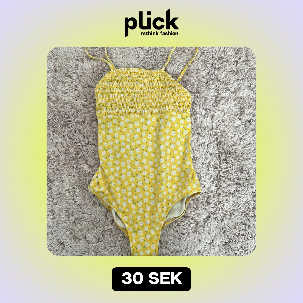 Superfin gul baddräkt med sött blommönster och smala axelband. Den har en smockad överdel som ger en skön och flexibel passform. Perfekt för sommarens alla badäventyr! 🌼