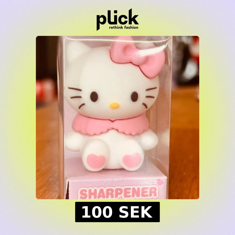 Söt liten pennvässare med Hello Kitty-motiv. Höjd 7 cm. Kommer med kartong som bild 1 visar. Fin som prydnad eller samlarobjekt. Ny och oanvänd.