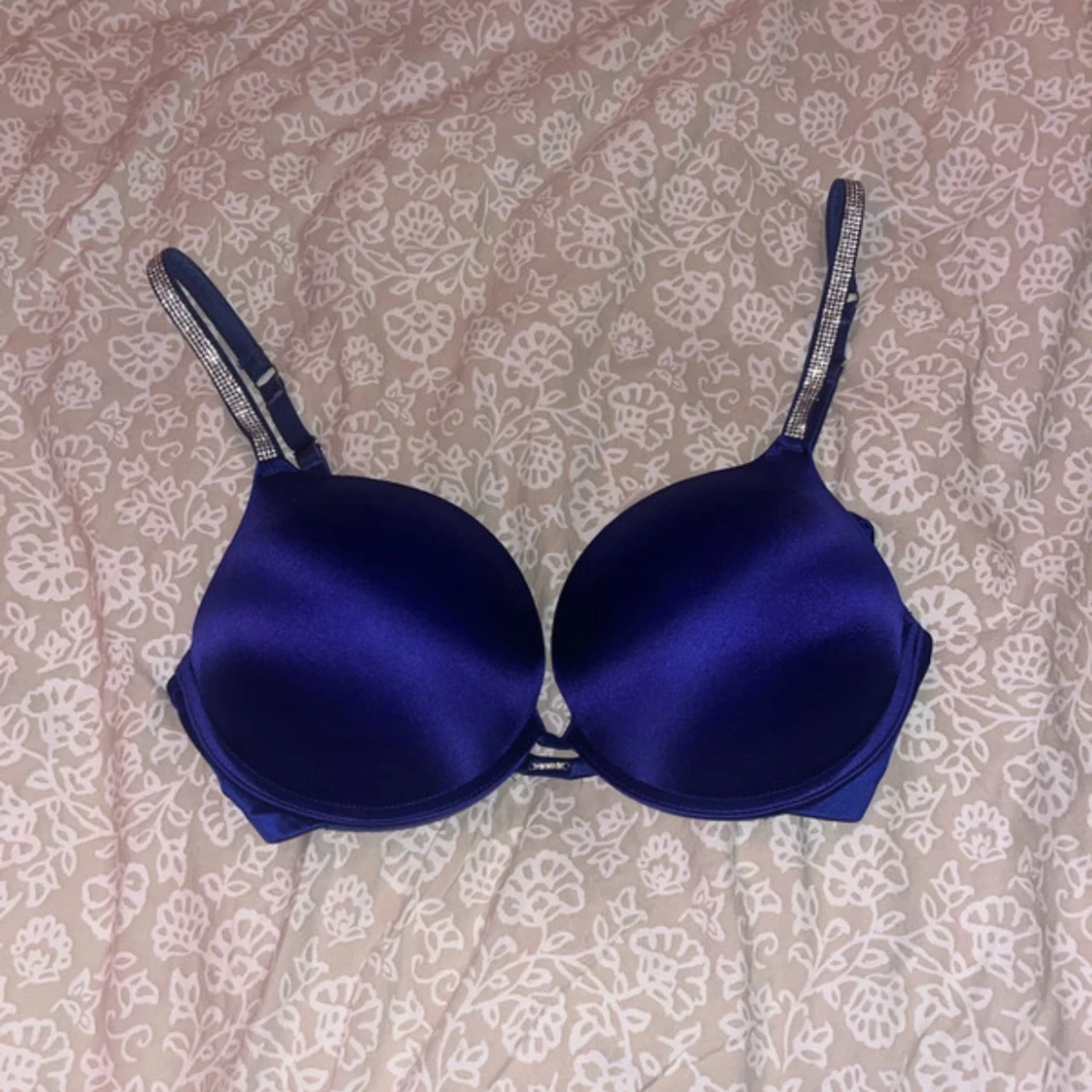 Snygg blå bh i storlek 85 C . Endast testad och var förstor så därför aldrig använd. Vadderade kupor och glitter band