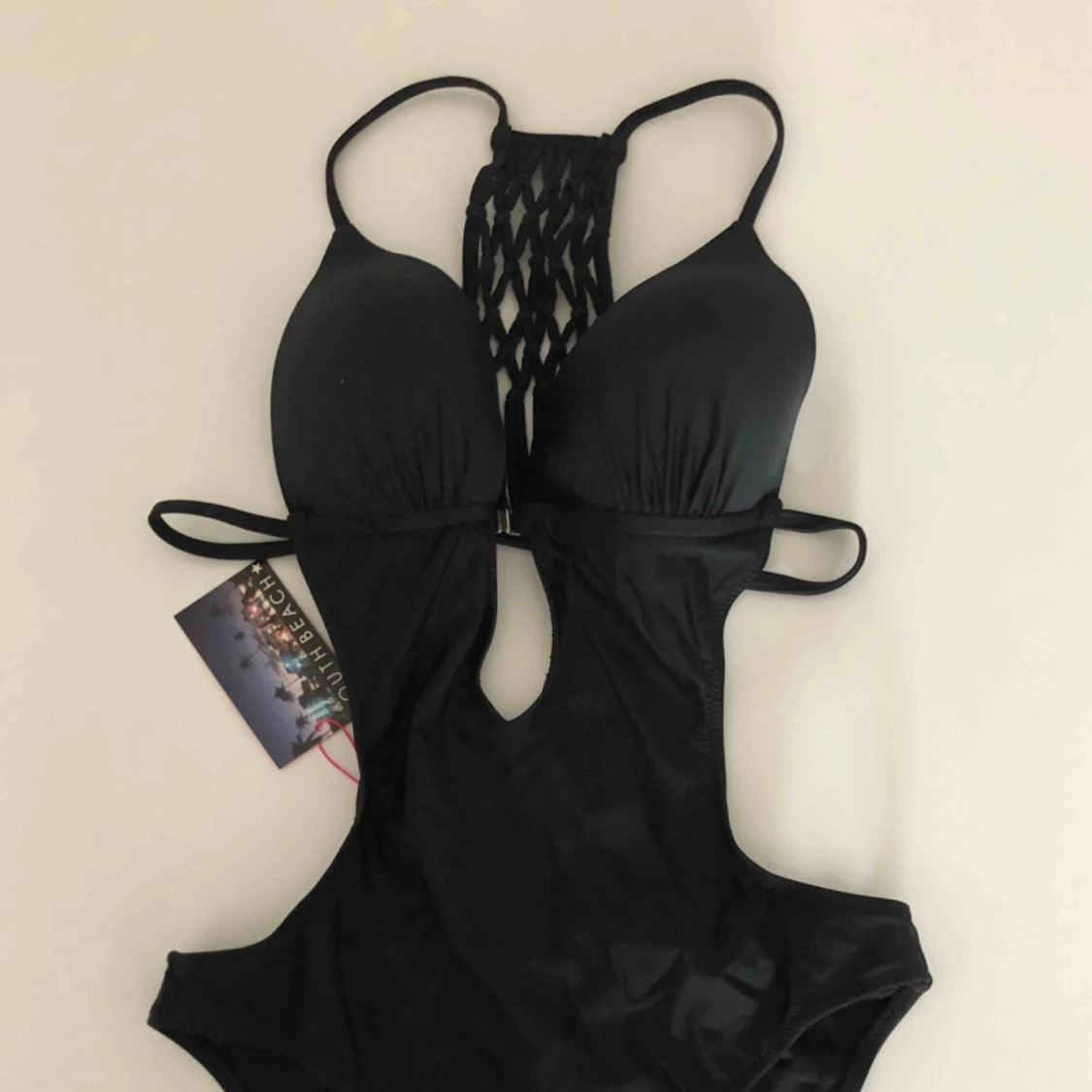 Helt ny svart baddräkt med snygg ryggdetalj. Prislapp kvar på plagget. Hämtas i Malmö eller skickas mot frakt.