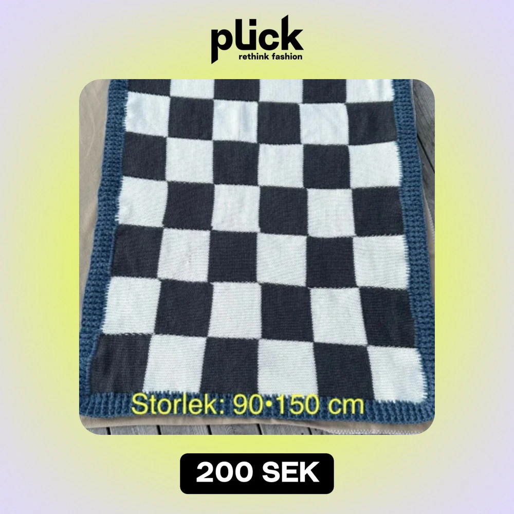 Nystickad och virkad tjock pläd. Den väger 1,2 kg och är mjuk och skön. Storleken står på bilden.