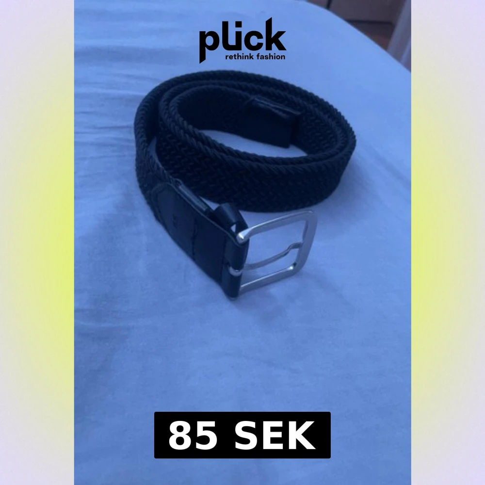 Svart flätat bälte med silverfärgat spänne. Bältet har detaljer i skinn vid ändarna och själva remmen är i ett mjukt, flätat syntetmaterial. Passar perfekt till jeans eller chinos för en clean och stilren look. 90cm lång.