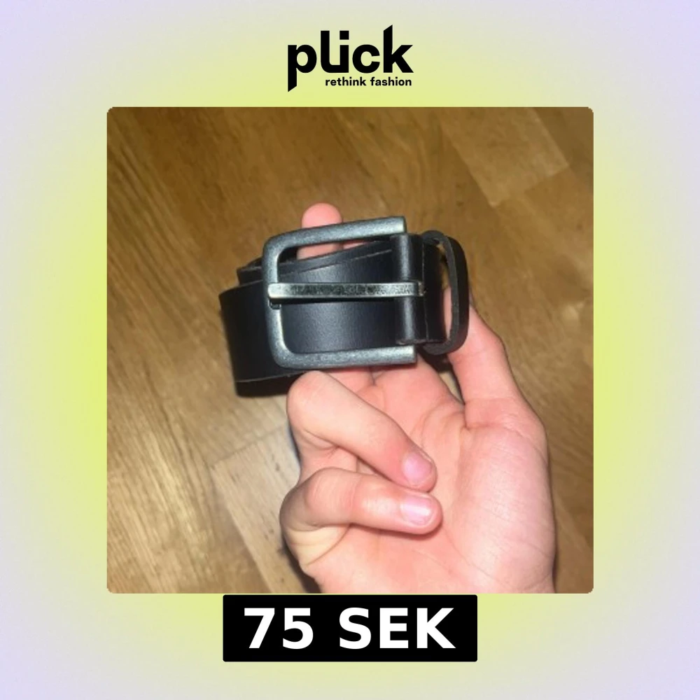 Snyggt svart bälte med ett stilrent, fyrkantigt spänne i silverfärg. Bältet har en klassisk och enkel design som passar till jeans eller kostymbyxor. Materialet ser ut att vara skinn, vilket ger en tidlös och cool vibe. Perfekt för dig som vill ha en clean look.