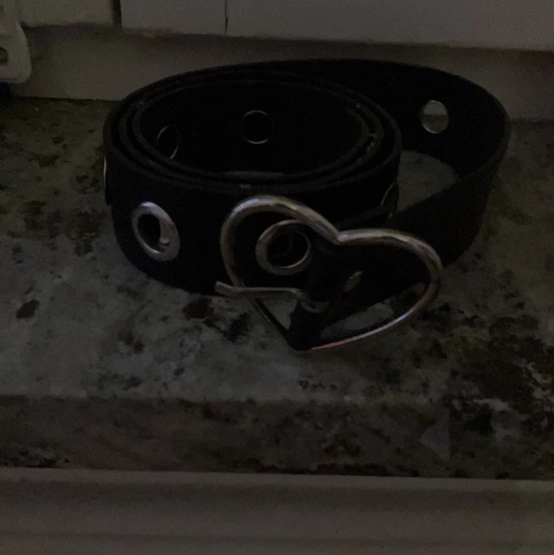Coolt skärp med hjärta, hyfsat skick det är dock en metalring som ramlat av men det påverkar inte användningen Även lite slitet