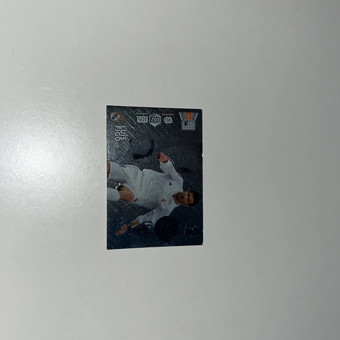 Snygg vit fotbollströja från Real Madrid, buren av Luis Figo. Tröjan har korta ärmar, klassisk rund hals och Real Madrid-emblemet på bröstet. Adidas-loggan syns tydligt och designen är stilren utan mönster. Perfekt för dig som älskar fotboll och vill ha en ikonisk tröja.