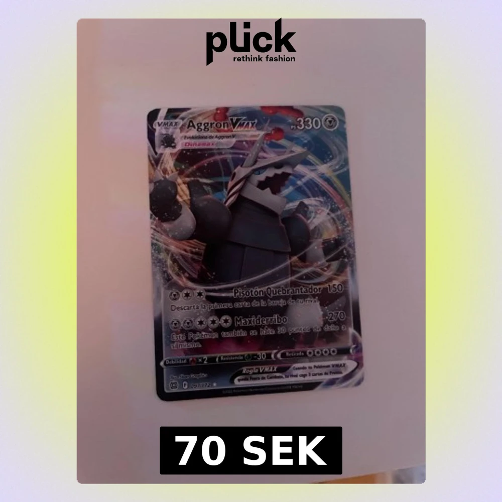 Coolt Pokémonkort med Aggron VMAX! Perfekt för dig som samlar eller spelar Pokémon TCG. Kortet har snyggt holografiskt motiv och är på spanska. Ett måste för alla unga Pokémonfans som vill boosta sin samling med en kraftfull VMAX!