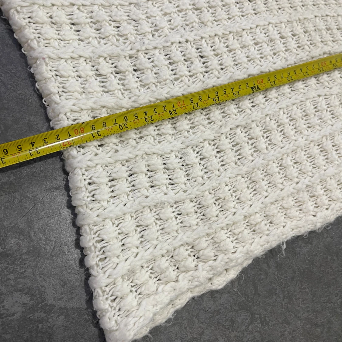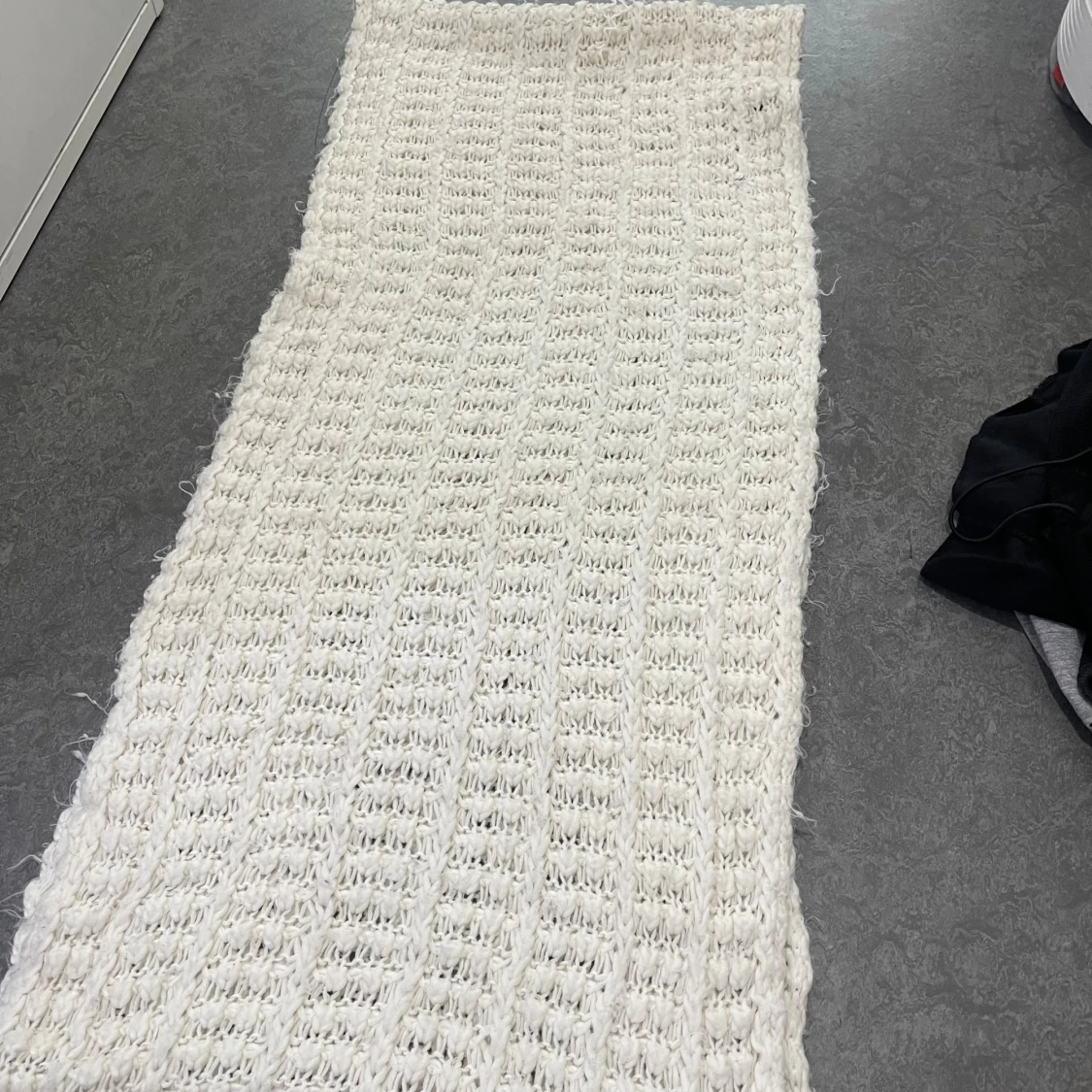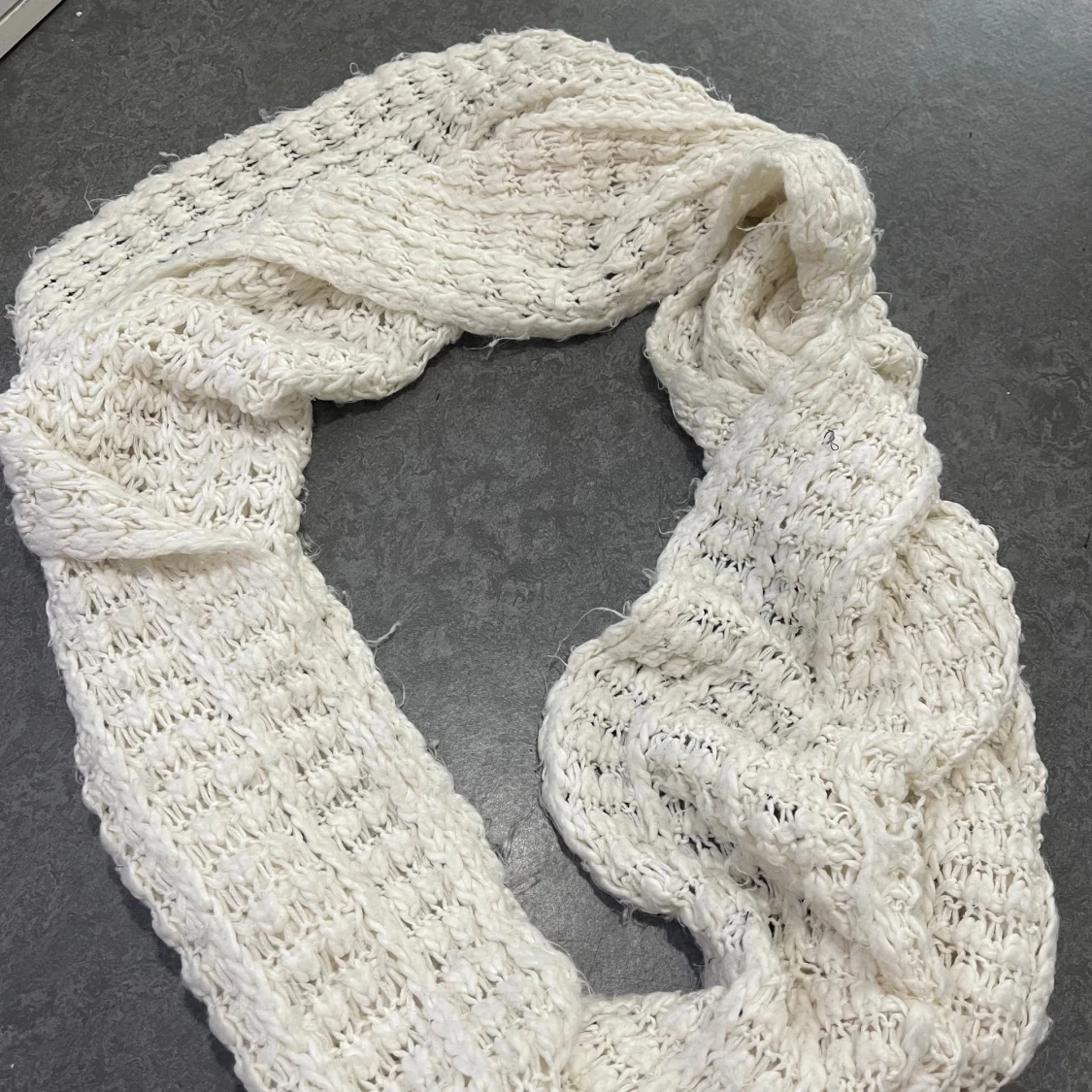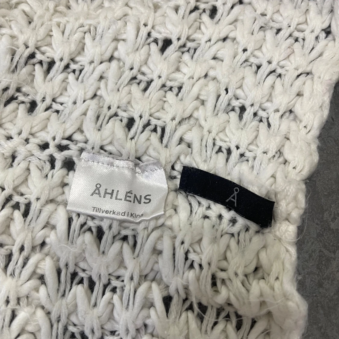 Mysig och bred vit halsduk från Åhléns med grovstickat mönster. Halsduken är ca 20 cm bred och har en luftig, chunky känsla som passar perfekt när det är kallt ute. Enkel att matcha och ger en clean look till din outfit.