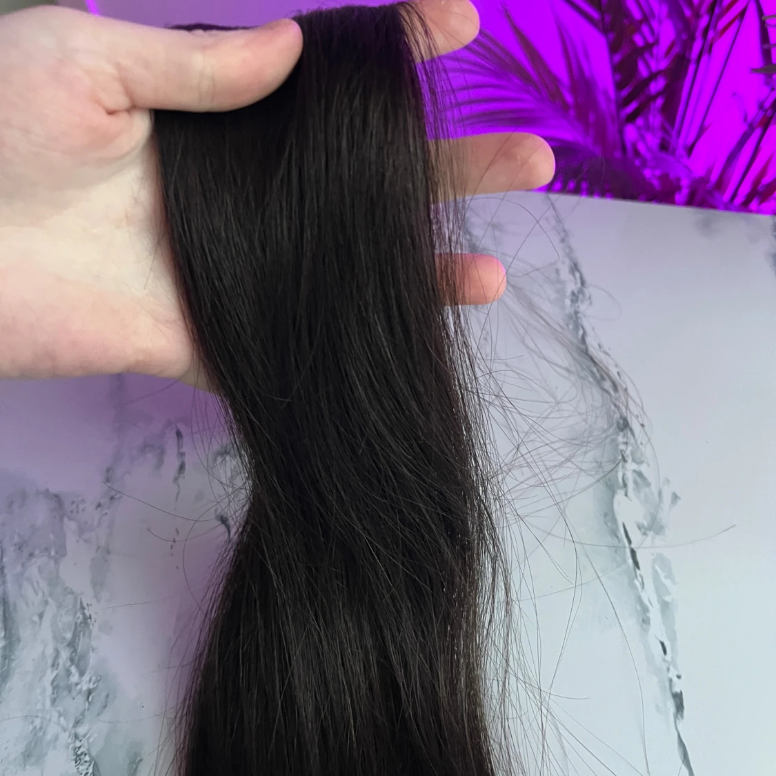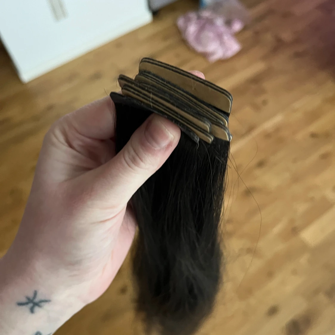 Människohår extensions, mörkbrunt hår, håller i månader, oanvänd.