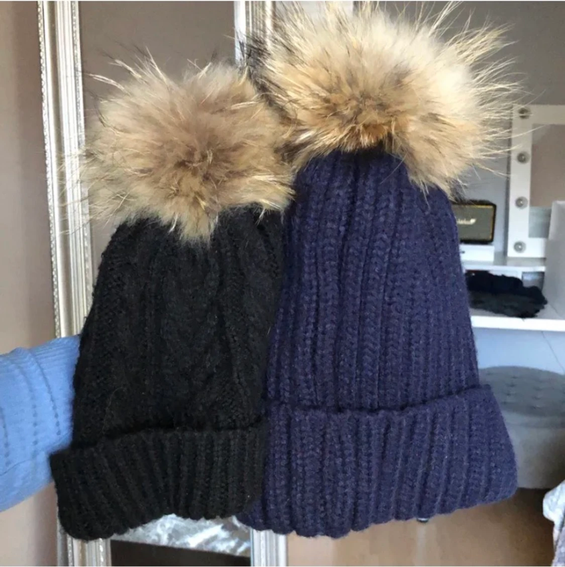 Den mörkblåa är andvänd typ 3 gånger och den svarta är väl andvänd. Skulle säga att den blåa är i topp skick och den svarta i bra skick! Styck 100 båda 150😊