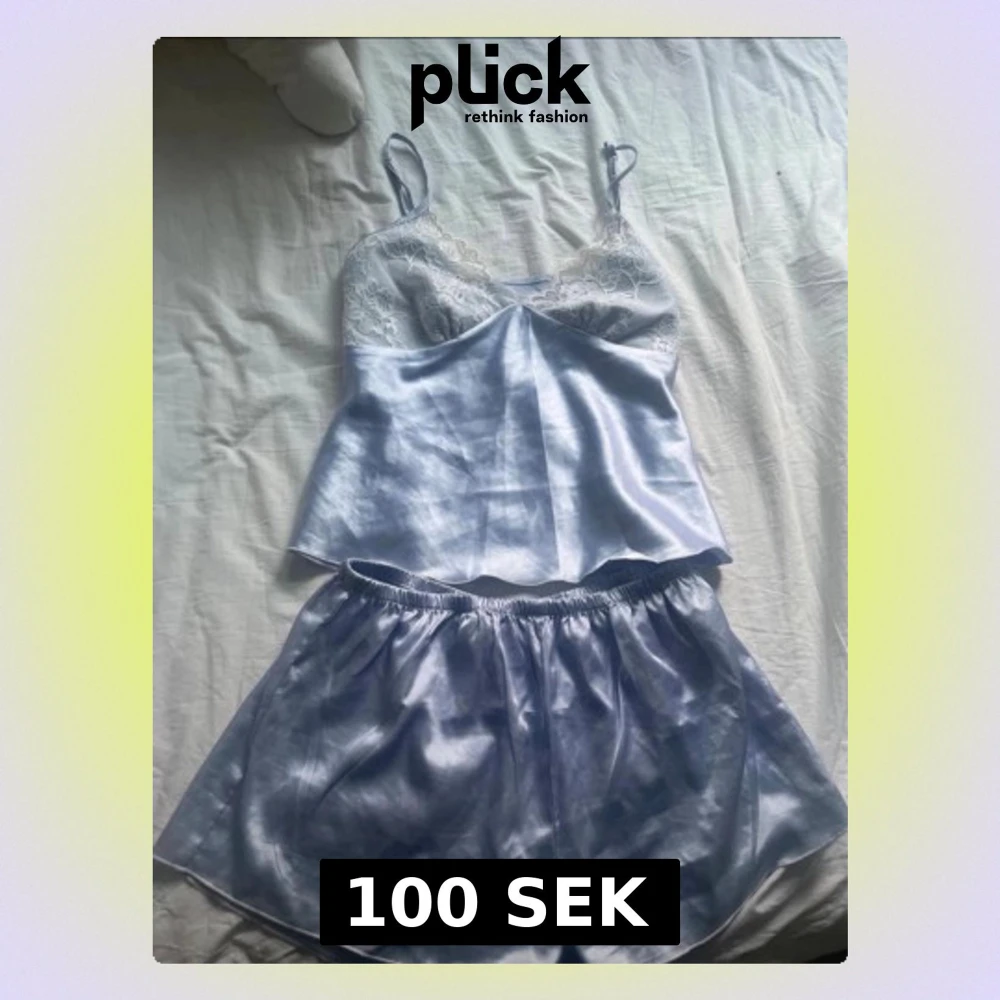 Ett jättefint pyjamas sätt som även kommer med en morgonrock med samma färg med spets på slutet av ärmarna💕Har bara provat och älskar men är tvungen att rensa ut på grund av flytt! XS-S