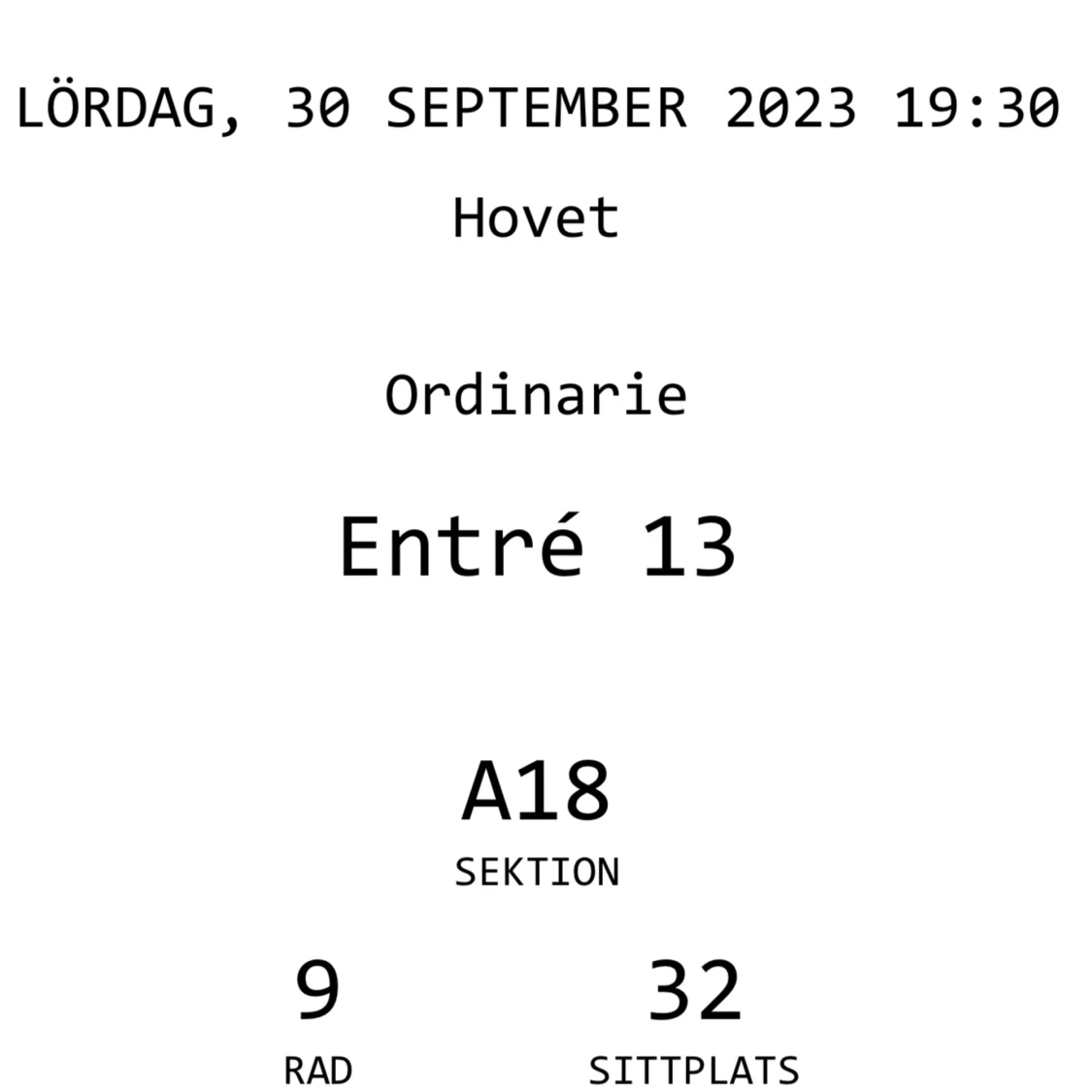 Då jag köpte dubbla biljetter så säljer jag nu 3st sittplatser som är mycket nära scenen. Platserna är bredvid varandra 32, 33 och 34! Skriv för mer information🤍 750kr per biljett, går att diskutera☺️🤍