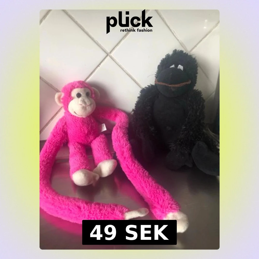 Två apor i fint skick med långa gosiga armar en i rosa och en i svart färg