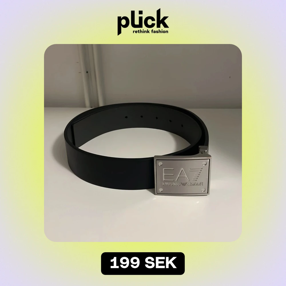 Säljer ett stilrent svart bälte från Emporio Armani med en snygg silverfärgad spänne. Bältet är i skinn och har en klassisk design som passar perfekt till både vardag och fest. Det är i one size och perfekt för att ge din outfit en lyxig touch!
