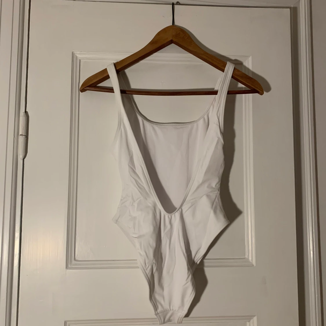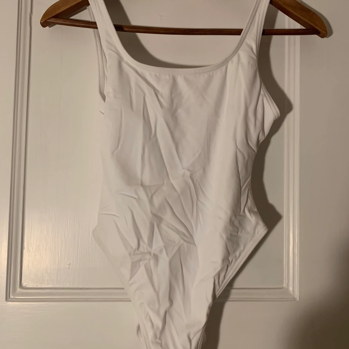 Vit oanvänd baddräkt från ASOS. Väldigt djup i ryggen och går högt upp på höfterna! säljes pga för liten. Står storlek 36 på lappen men skulle absolut säga att det är storlek XS