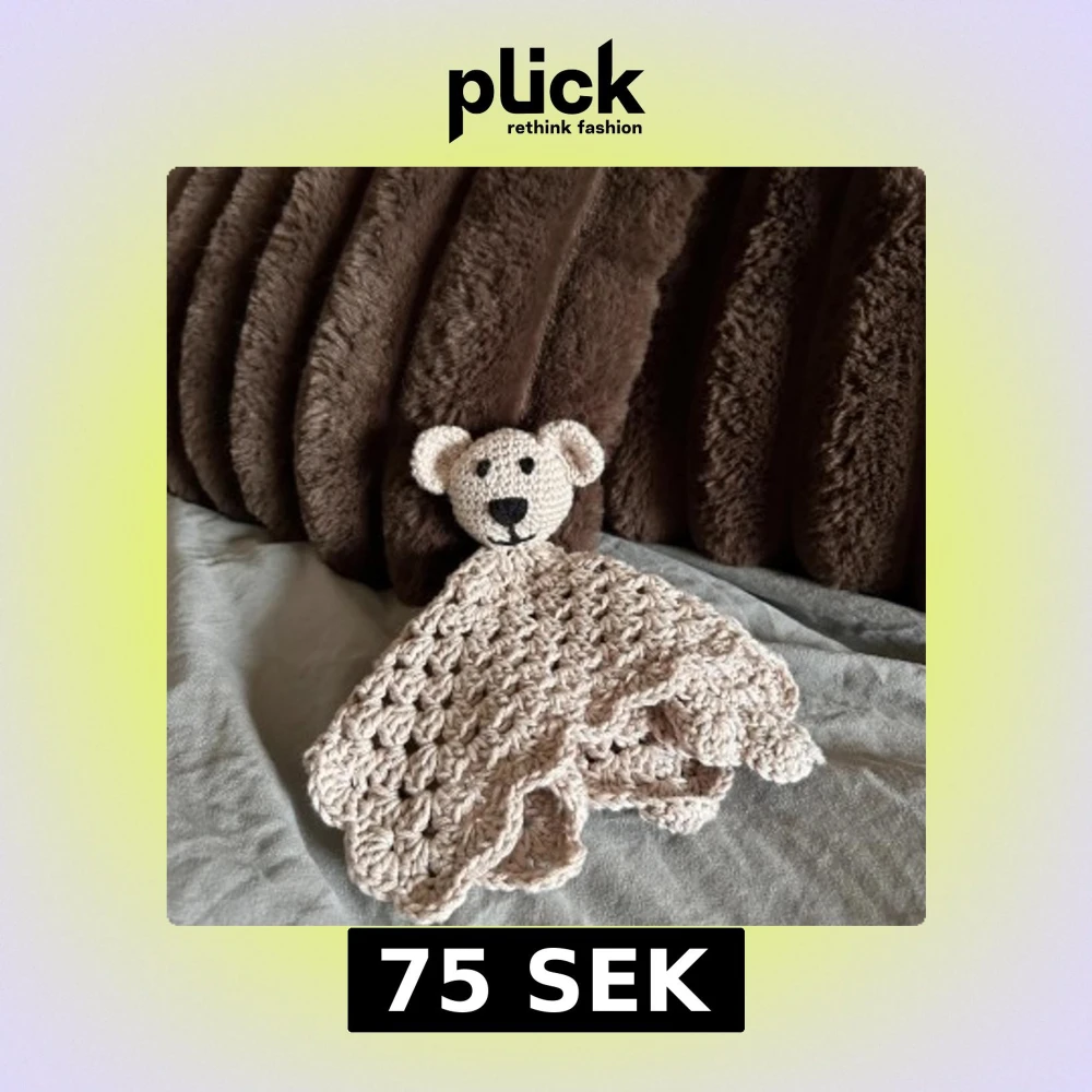 Egenvirkad snuttefilt med björnmotiv! Mått 30x30cm och går att tvätta🧸