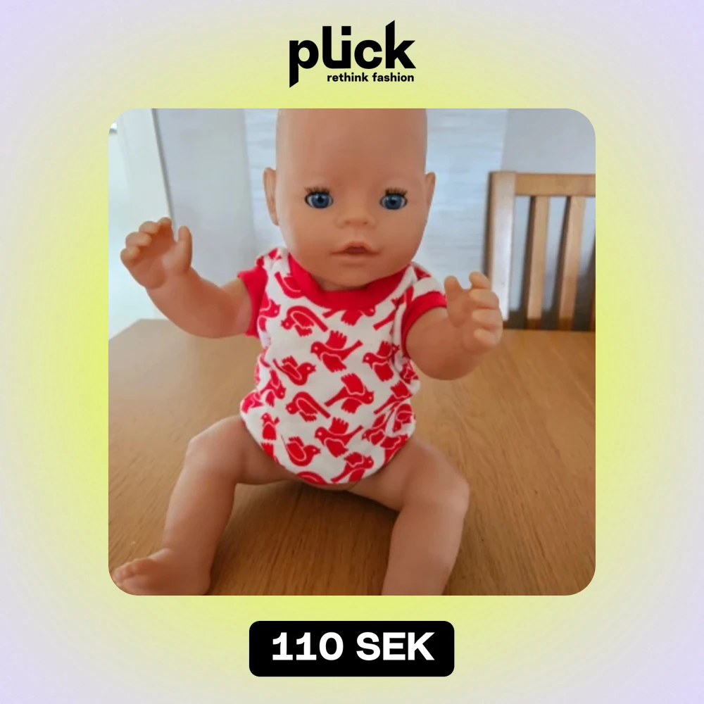 Säljer en fin baby docka den i lång ca. 42 cm. Det kan förekomma några märke som på bilden. Annars den i fin skick.