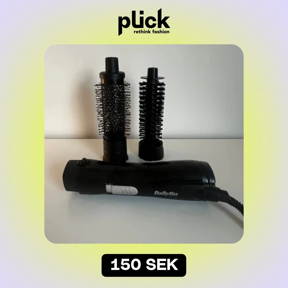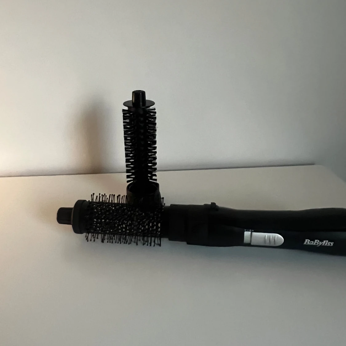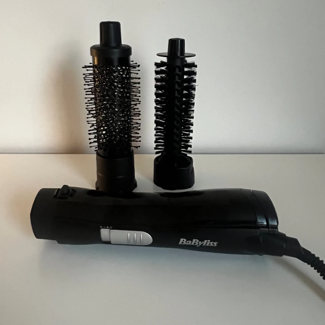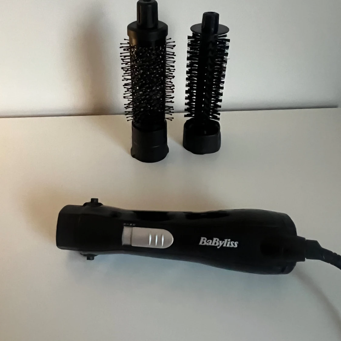 Babyliss smooth and shape Använd i gott skick Kraftig varmluftsborste med 800 W effekt för snabb och effektiv styling. Varmluftsborsten har två utbytbara borsthuvuden som torkar och formar ett fuktigt hår: ett keramiskt borsthuvud på 38 mm