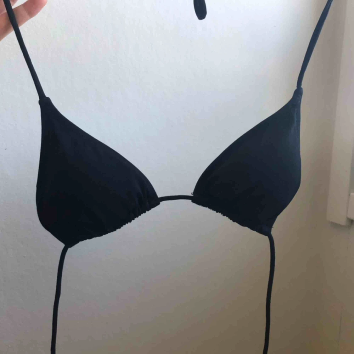 Svart triangel bikinitopp från HM! Klippt av lappen men om jag minns rätt är den i storlek xs/34. Lite liten för mig därför jag säljer! Knappt använd, som ny! Kolla gärna mina andra annonser för paketpris! 🥰