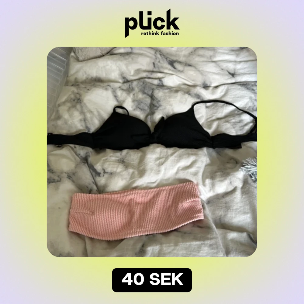 2 bikiniöverdelar säljes i fint skick. Knappt använda Rosa storlek : S från hm Svart storlek 75B från hm En för 25kr båda för 40kr