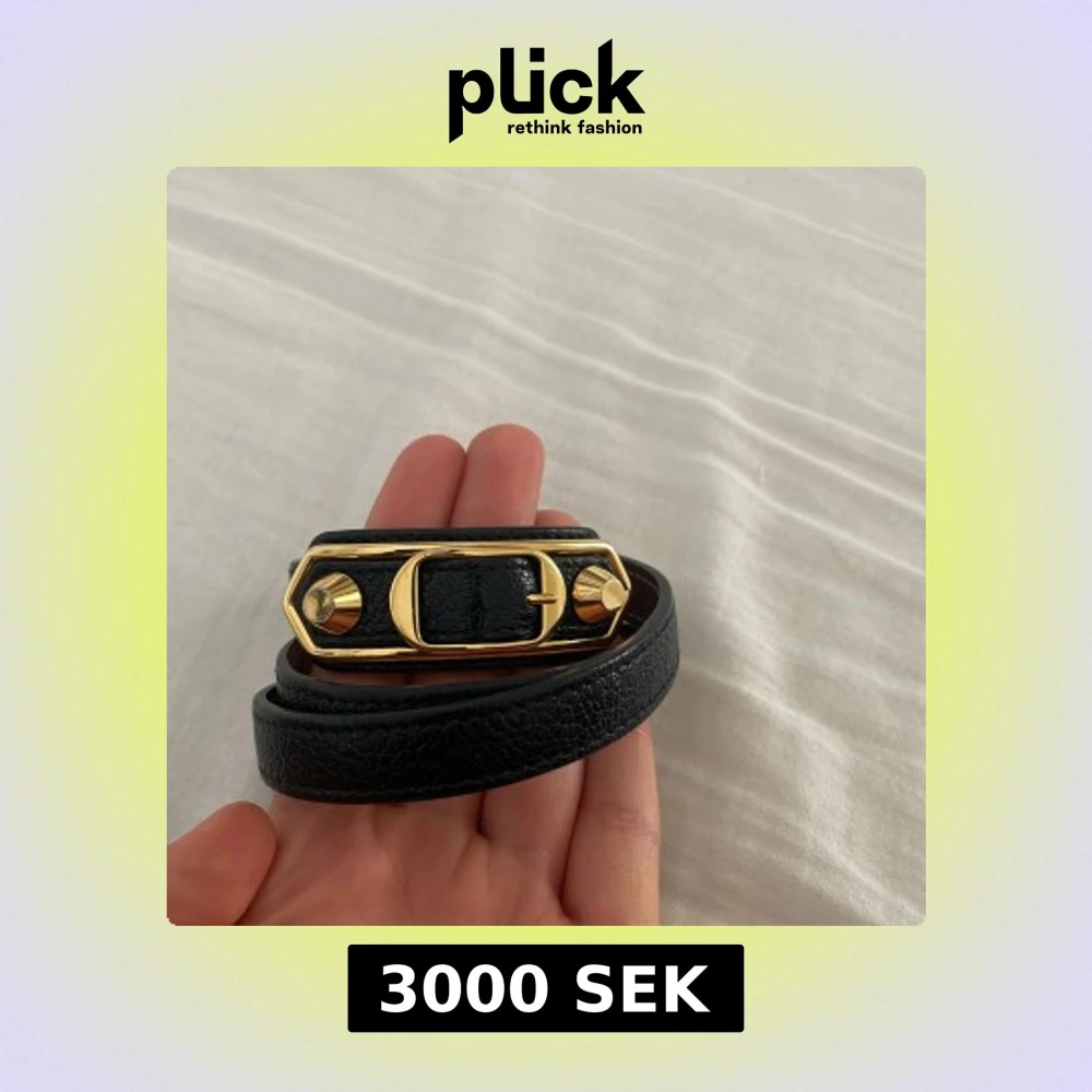 Snyggt svart armband från Balenciaga i äkta skinn med exklusiva guldfärgade metalldetaljer och spänne. Armbanet är vintage. Perfekt accessoar för att lyfta din outfit med lyxig känsla.