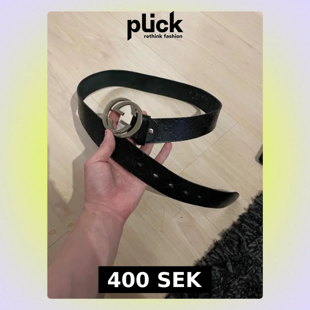 Snyggt svart bälte med präglade GG-loggor längs hela remmen och ett stort, rundat metallspänne med GG-design. Bältet är gjort i äkta skinn och har en klassisk, stilren look som lyfter vilken outfit som helst.