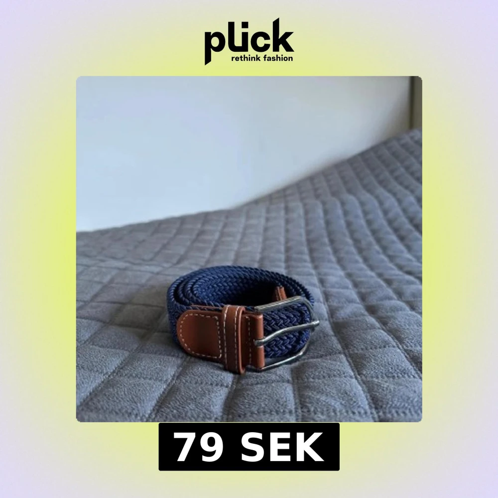 Snyggt mörkblått flätat bälte med bruna skinn-detaljer och silverfärgat spänne. Bältet har en stilren design med tydliga sömmar på skinnet och passar perfekt till jeans eller chinos. Den flätade strukturen ger en modern och avslappnad känsla.