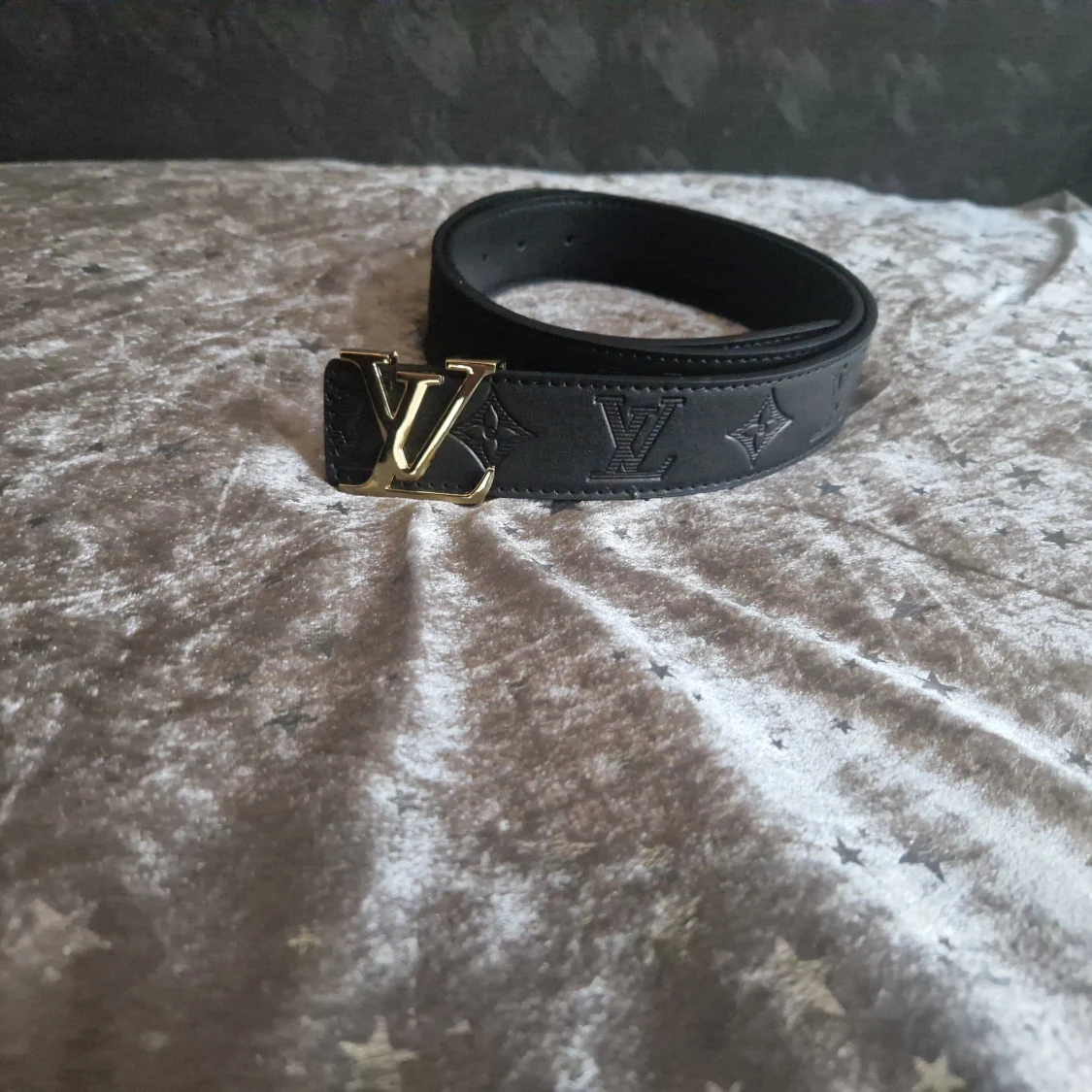 Fint bälte i bra skick 115 cm helsvarta med guld spänne.