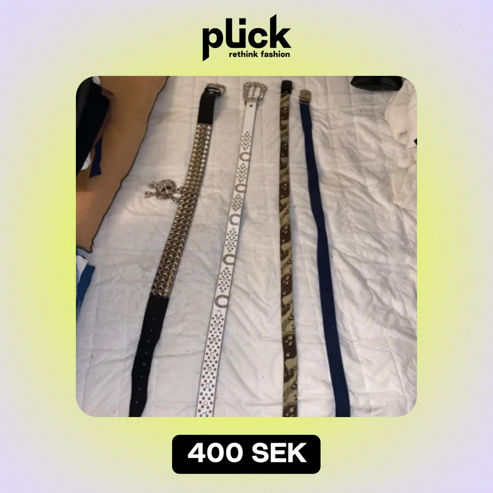 OBS! Bara dom två bältena till höger och dödskallen kvar!! Säljs för 50kr styck:) (dödkalle bucklen 100kr)