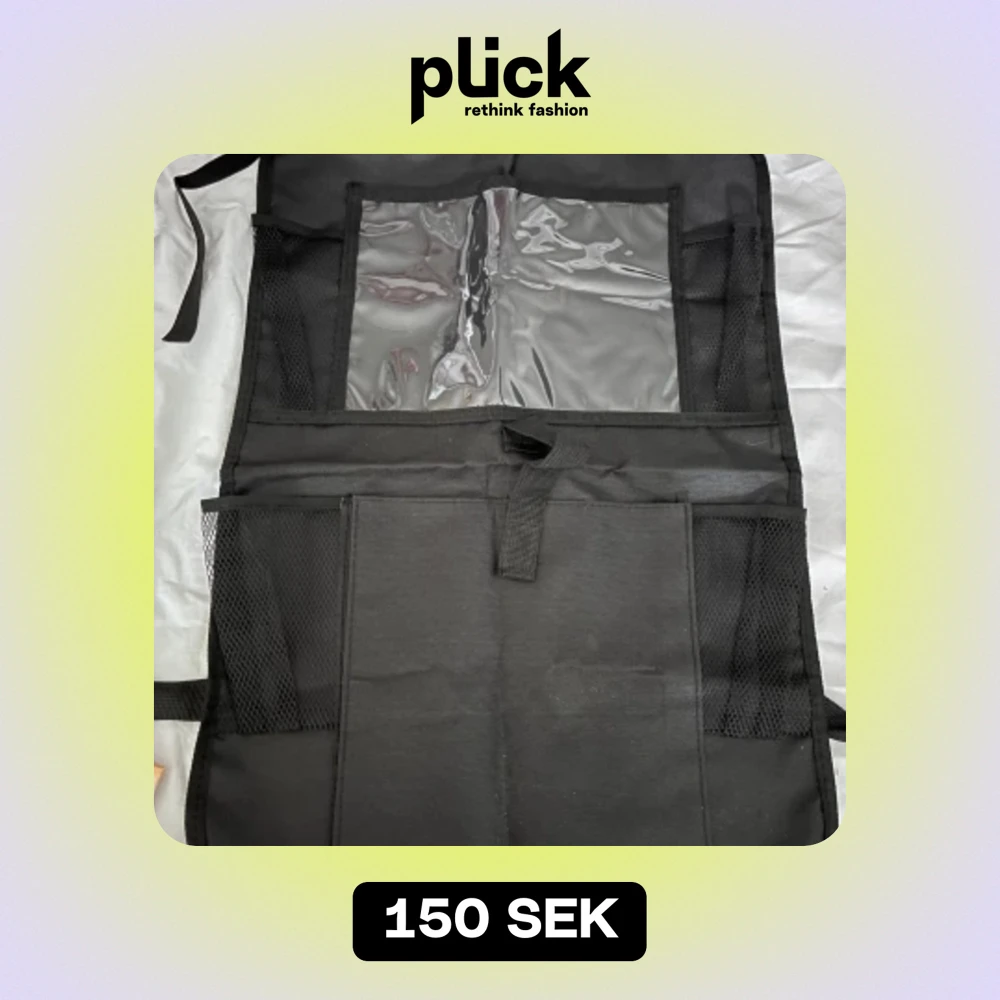 Barnförvaring till bil. Man spänner fast den på sättet framför. Väldigt praktiskt men aldrig använd.