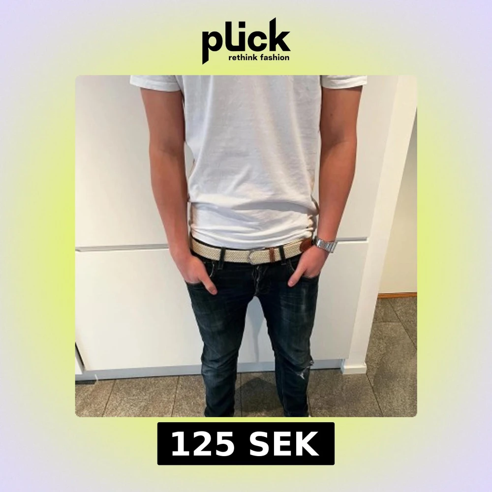 Snyggt beige flätat bälte från Tressé (mitt UF) med detaljer i brunt skinn och silverspänne. Bältet har en stilren och modern look som passar perfekt till jeans eller chinos. Flätad design ger en cool och avslappnad känsla. Har 13 stycken kvar, så skynda innan de tar helt slut.