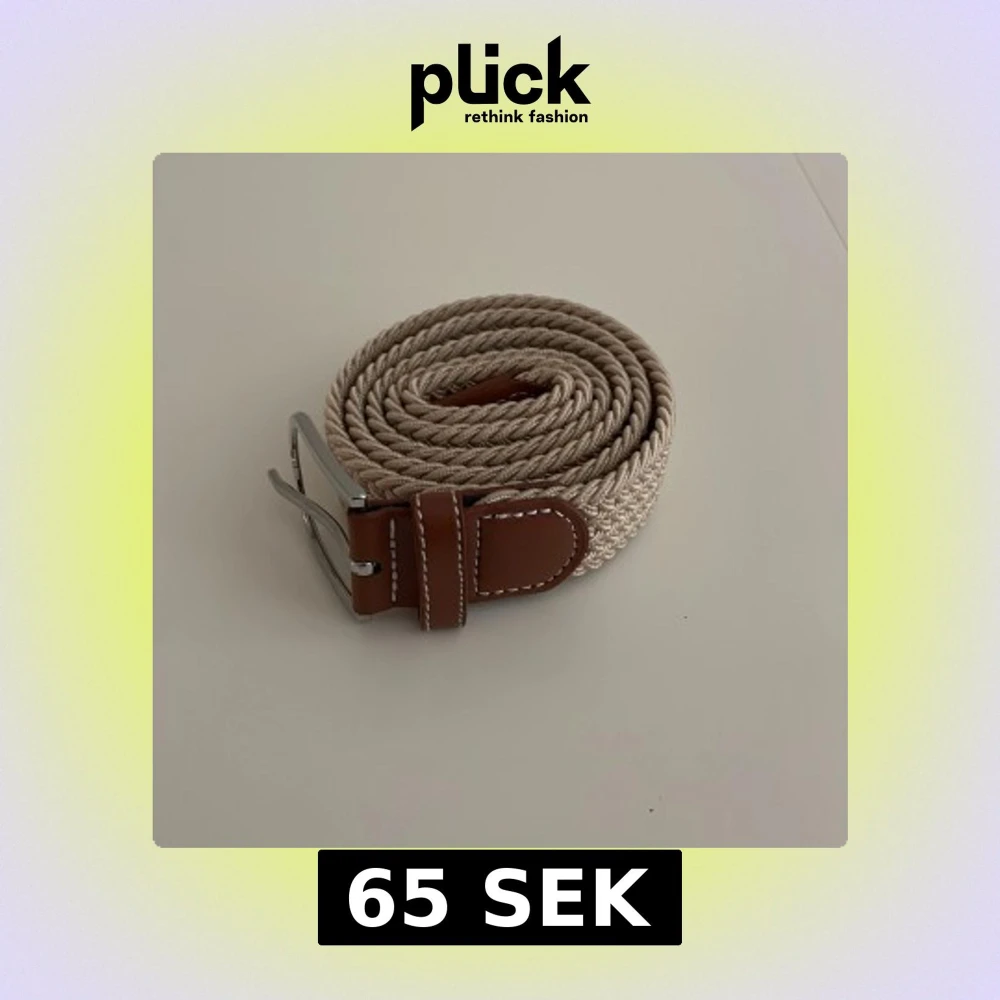 Snyggt beige flätat bälte med bruna läderdetaljer och silverspänne. Perfekt accessoar för att lyfta din outfit med en stilren och modern touch. Bältet har en klassisk design och passar till många olika looks.