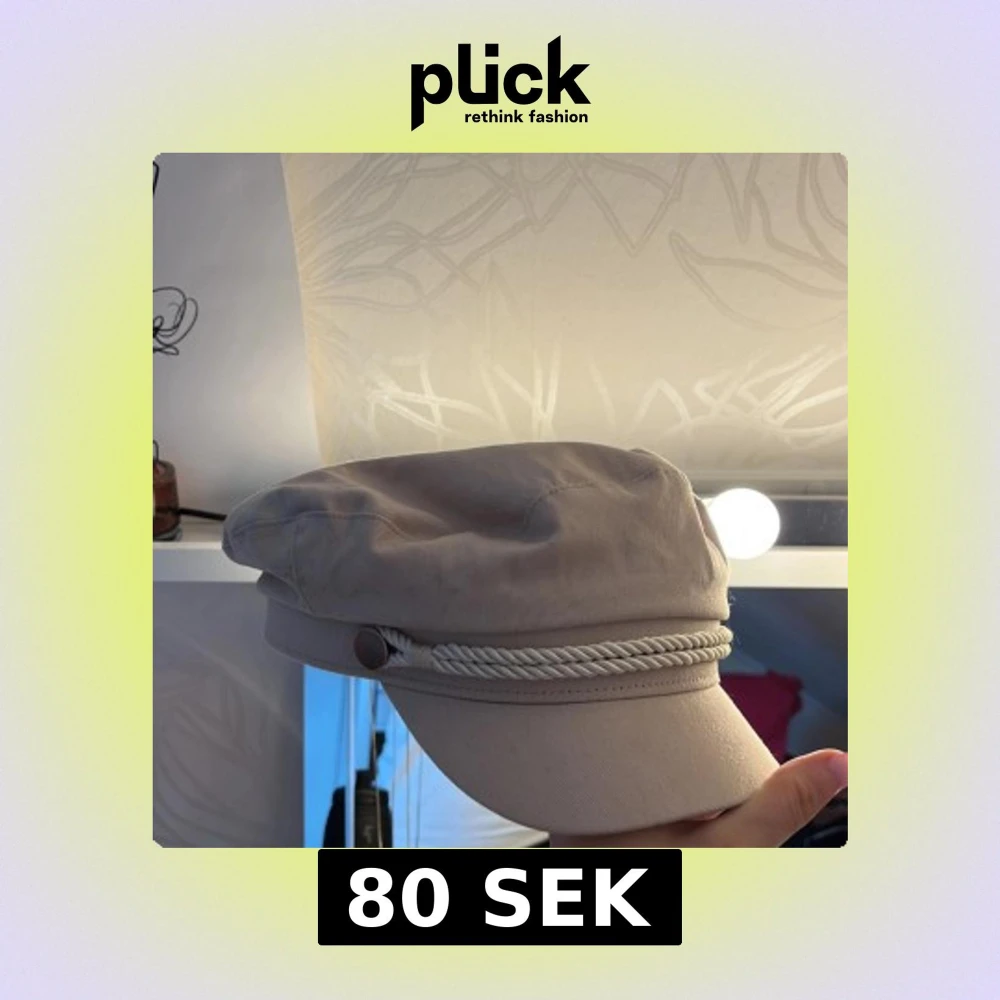 En snygg ljus beige hatt, som man kan style sin outfit med. Använd en gång, har några små fläckar men de syns knappt. Hör av er om ni vill ha fler bilder🩷